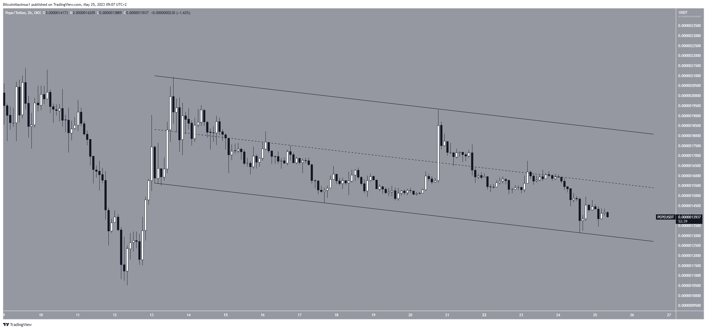 Da mesma forma que o Bitcoin, o preço da PEPE é negociado dentro de um canal paralelo de baixa desde 13 de maio. Esse canal é considerado um padrão corretivo. Portanto, espera-se que leve a rompimentos na maioria das vezes.