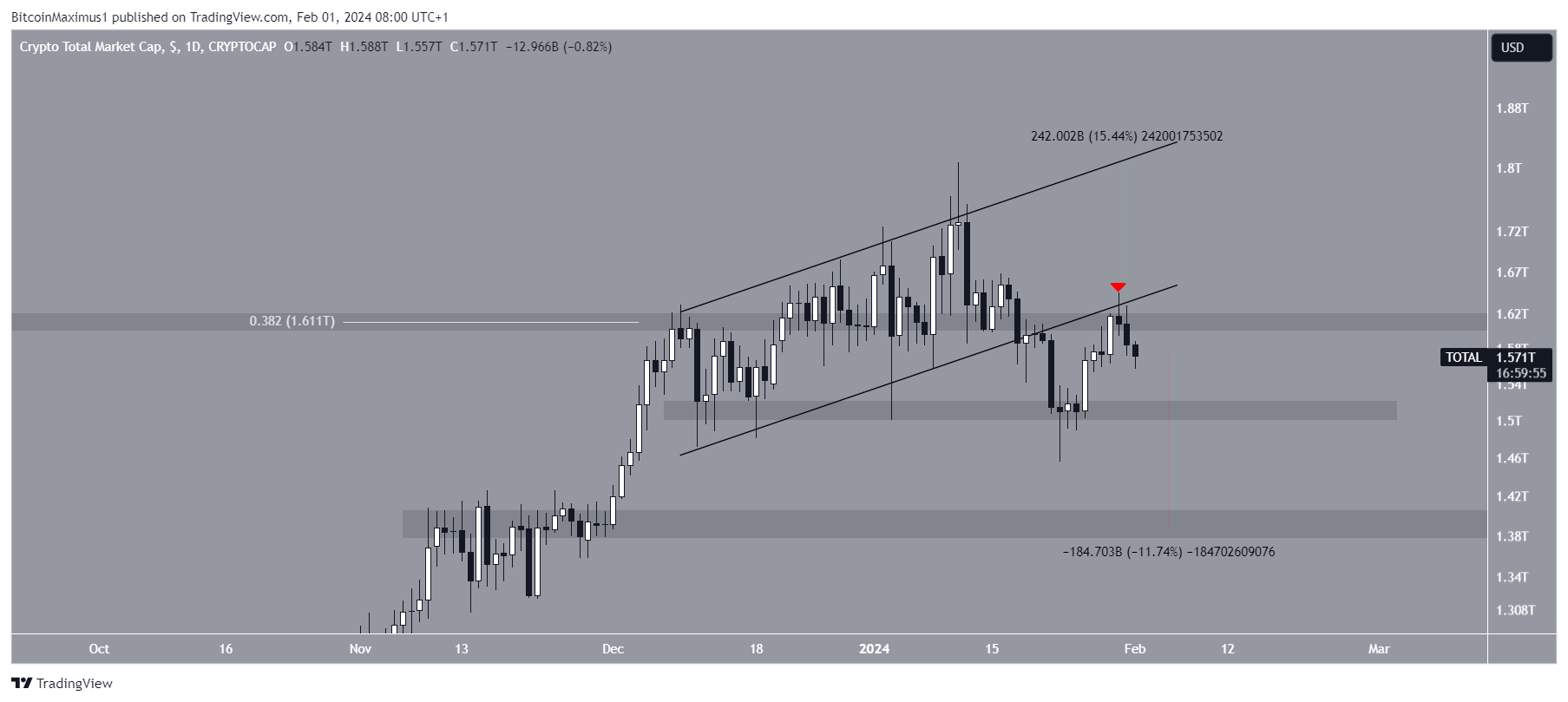 A capitalização total do mercado de criptomoedas foi negociada dentro de um canal paralelo de alta desde 9 de dezembro de 2023. O movimento levou a uma alta de US$ 1,81 trilhão em 11 de janeiro de 2024.