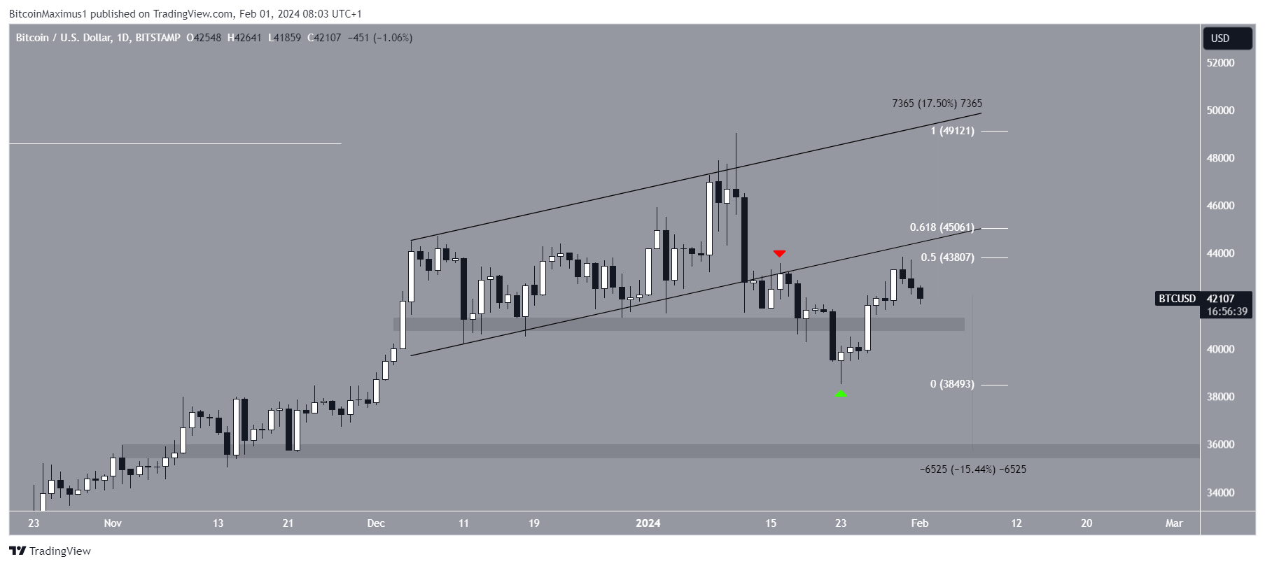 O Bitcoin tem sido negociado dentro de um canal paralelo de alta desde dezembro. No entanto, rompeu o canal em 12 de janeiro de 2024. Isso é um sinal de que a tendência de alta terminou.