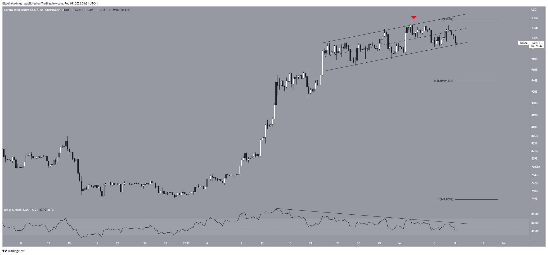 A capitalização do mercado de criptomoedas está em um canal paralelo de alta desde 23 de janeiro. Esses canais são considerados padrões de baixa, o que significa que levam a quedas na maioria das vezes.