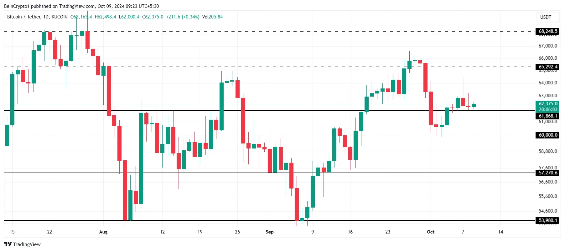 No entanto, se o Bitcoin perder o suporte em US$ 61.868, ele corre o risco de cair para US$ 60 mil. Uma queda abaixo deste nível crítico pode levar a um declínio mais acentuado, potencialmente empurrando o preço para US$ 57.270.