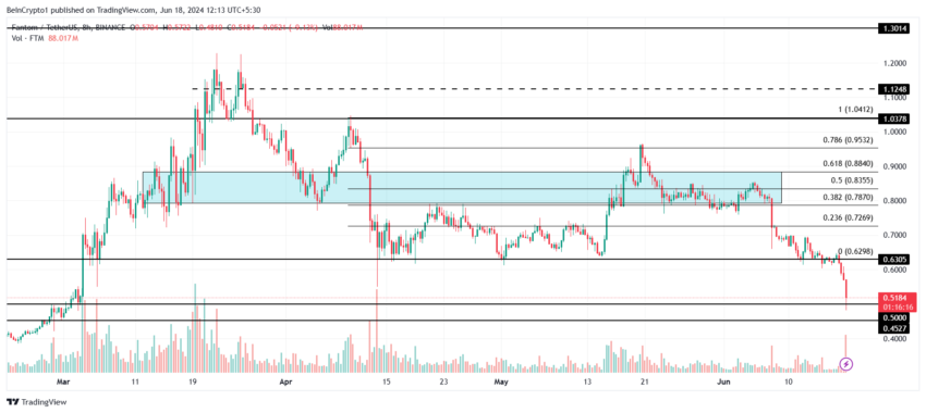 A Fantom também sofreu perdas consideráveis, atingindo o menor nível em três meses. A criptomoeda agora corre o risco de perder o nível de suporte de US$ 0,50.