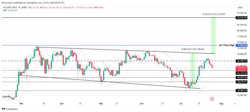 No entanto, se a tendência de baixa continuar a se intensificar, o preço do Bitcoin poderá sucumbir a ela, potencialmente perdendo o suporte de US$ 63.000.