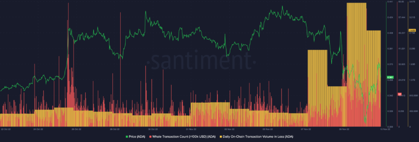 Os volumes diários de perdas na rede Cardano aumentaram massivamente, o que pode induzir ainda mais alguma pressão do lado da venda se os lucros de curto prazo forem realizados.