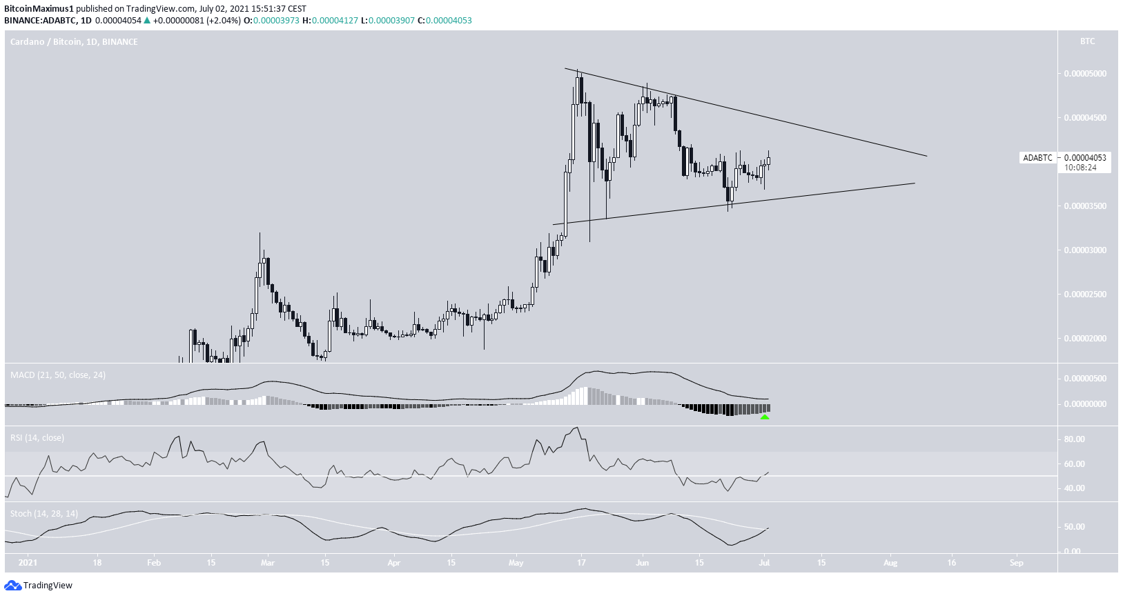 - ADA/BTC está sendo negociada dentro de um triângulo simétrico.