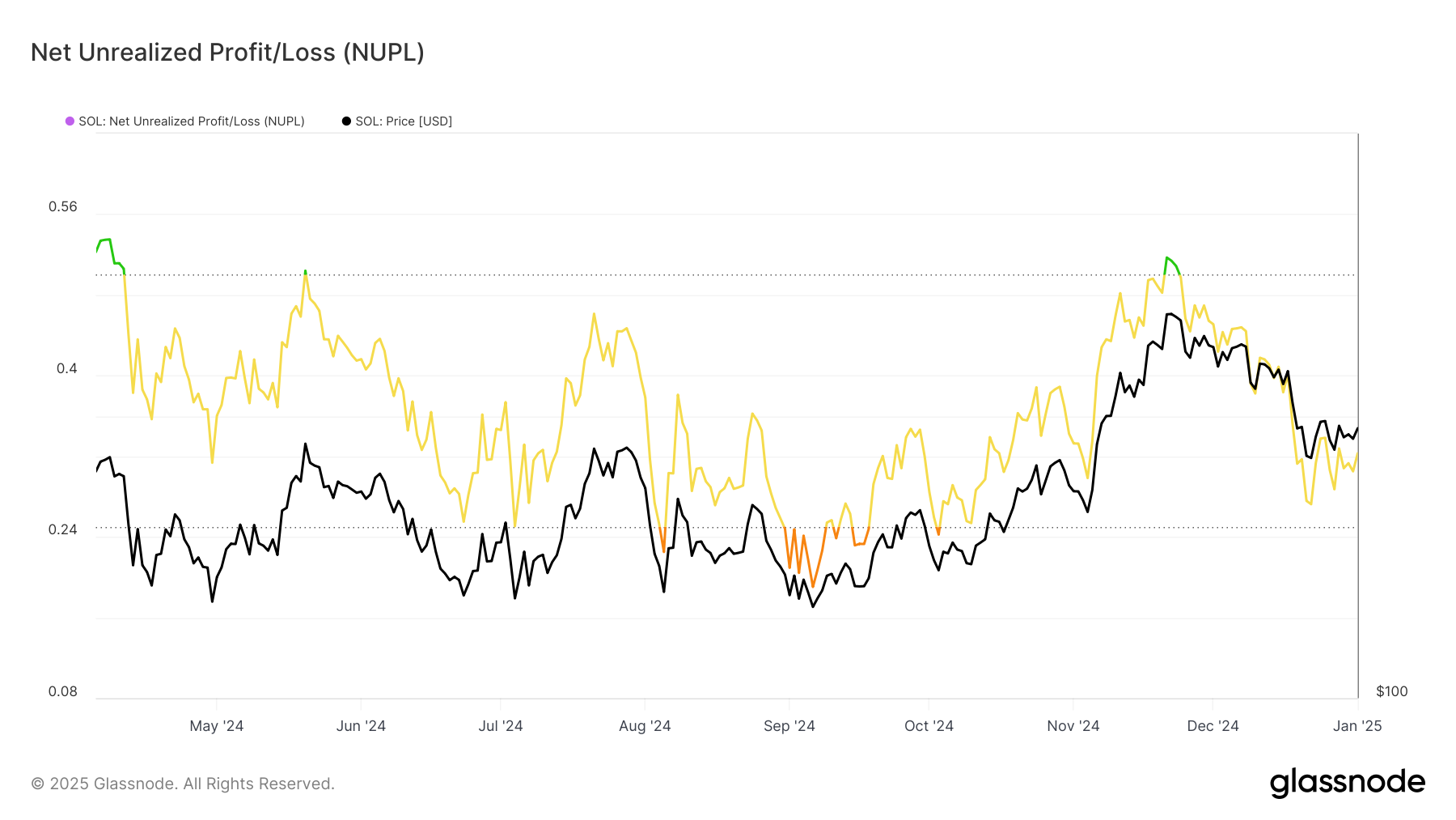 O indicador de Lucro/Prejuízo Não Realizado Líquido (NUPL) mostra que, apesar da recente volatilidade de preços, os investidores permanecem confiantes na recuperação da altcoin. Muitos estão se abstendo de vender suas participações, o que ajuda a evitar uma pressão excessiva de baixa. Esse otimismo apoia a tendência de alta atual, oferecendo uma base para crescimento adicional.