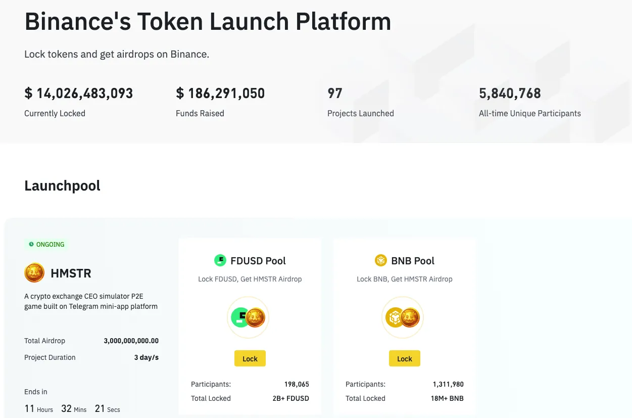 À medida que a listagem se aproxima, as exchanges estão intensificando os preparativos. Por exemplo, a Binance registrou mais de US$ 14 bilhões em valor total bloqueado, com usuários fazendo staking de moedas FDUSD e BNB para participar do airdrop do HMSTR.