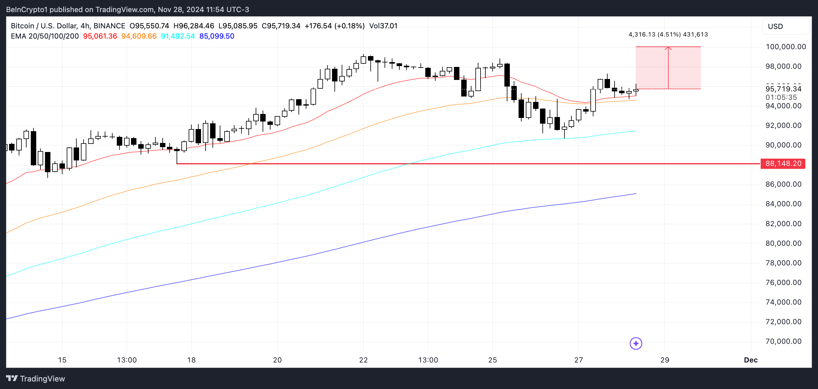 Se a tendência de alta recuperar o impulso, o preço do BTC pode ultrapassar US$ 100 mil e potencialmente testar US$ 105 mil no curto prazo. Por outro lado, se uma tendência de baixa surgir, o preço pode cair para US$ 88 mil antes de fazer outra tentativa de subir.