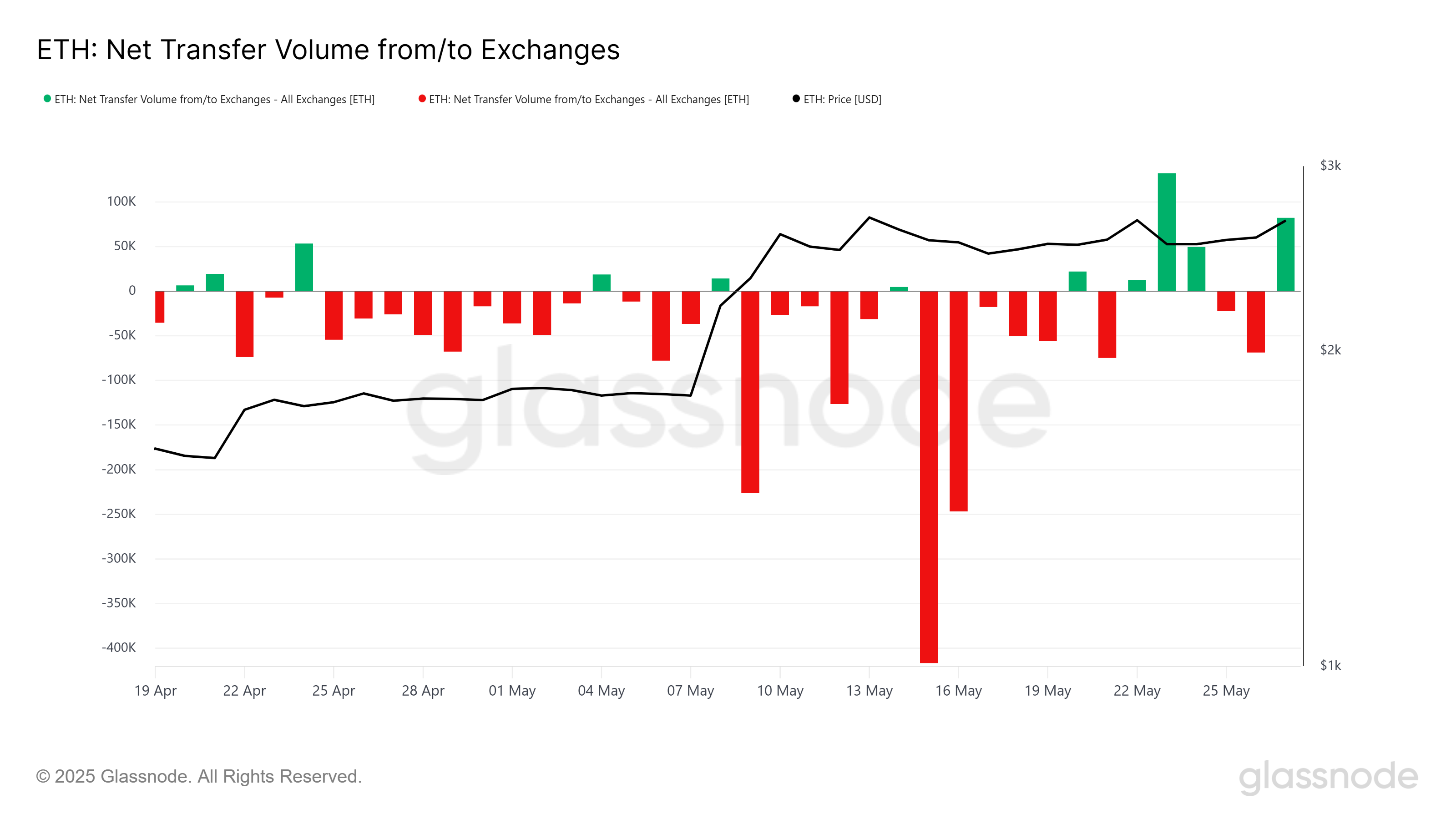 Dados de transferência mostram um aumento na oferta direcionada para exchanges, sinalizando maior pressão vendedora. Esses picos — os primeiros relevantes registrados neste mês — indicam que os vendedores estão começando a se movimentar. A incapacidade do Ethereum de superar os US$ 2.700, mesmo com o Bitcoin alcançando um novo recorde histórico, tem afetado negativamente a confiança dos investidores em ETH.