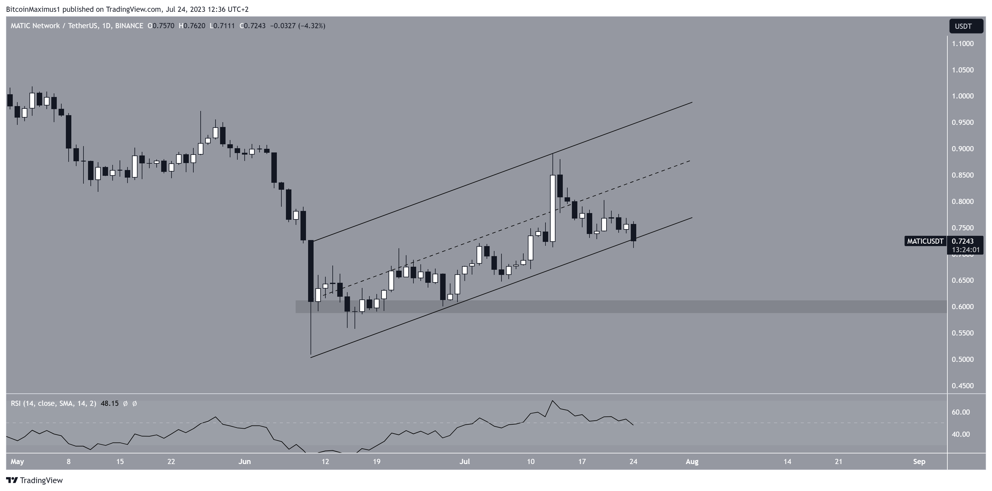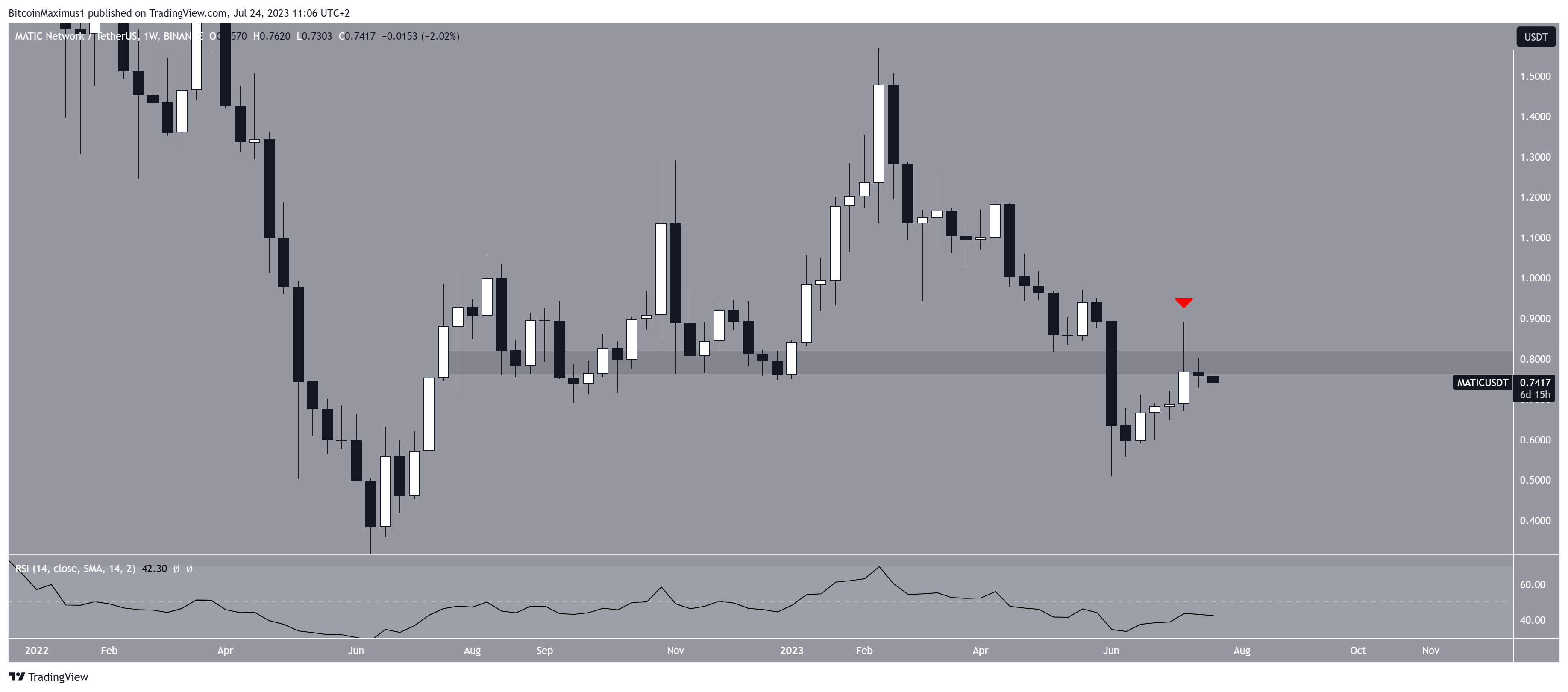 A análise do gráfico semanal da MATIC fornece uma perspectiva negativa. A principal razão para isso é a rejeição da área de resistência horizontal de US$ 0,80. A área atuou como suporte desde julho de 2022 e voltou a ser resistência nas últimas duas semanas.