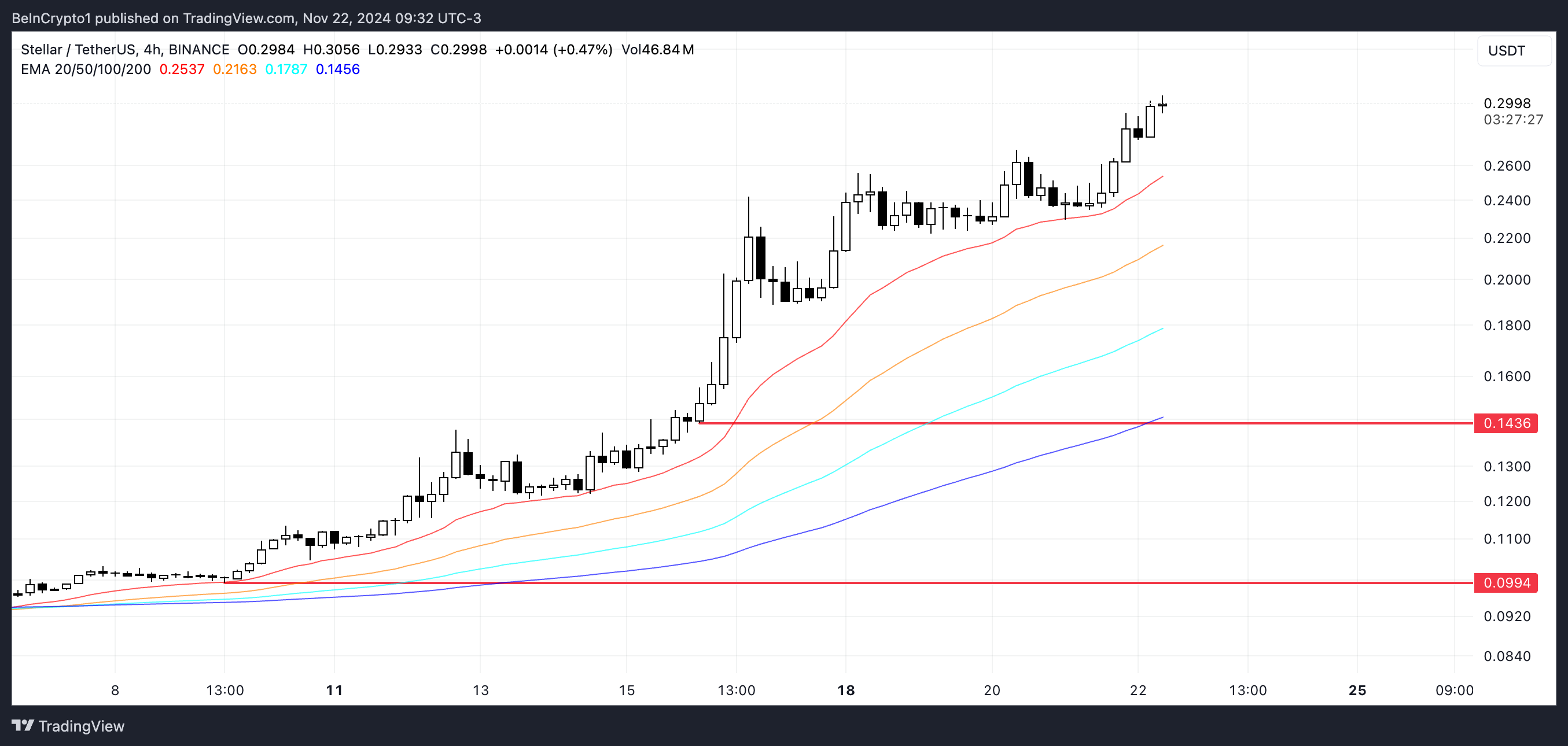 Se a tendência se inverter, o preço da XLM pode primeiro testar seu suporte mais próximo em US$ 0,14. Se este nível falhar, o preço da Stellar pode cair ainda mais para US$ 0,0994, representando uma correção de 67% em relação aos recentes máximos.