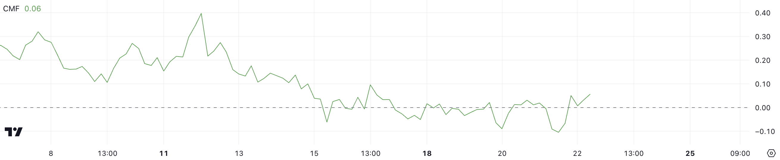 SponsoredNo entanto, o baixo CMF indica que a entrada ainda não é tão forte quanto em períodos de maior impulso.