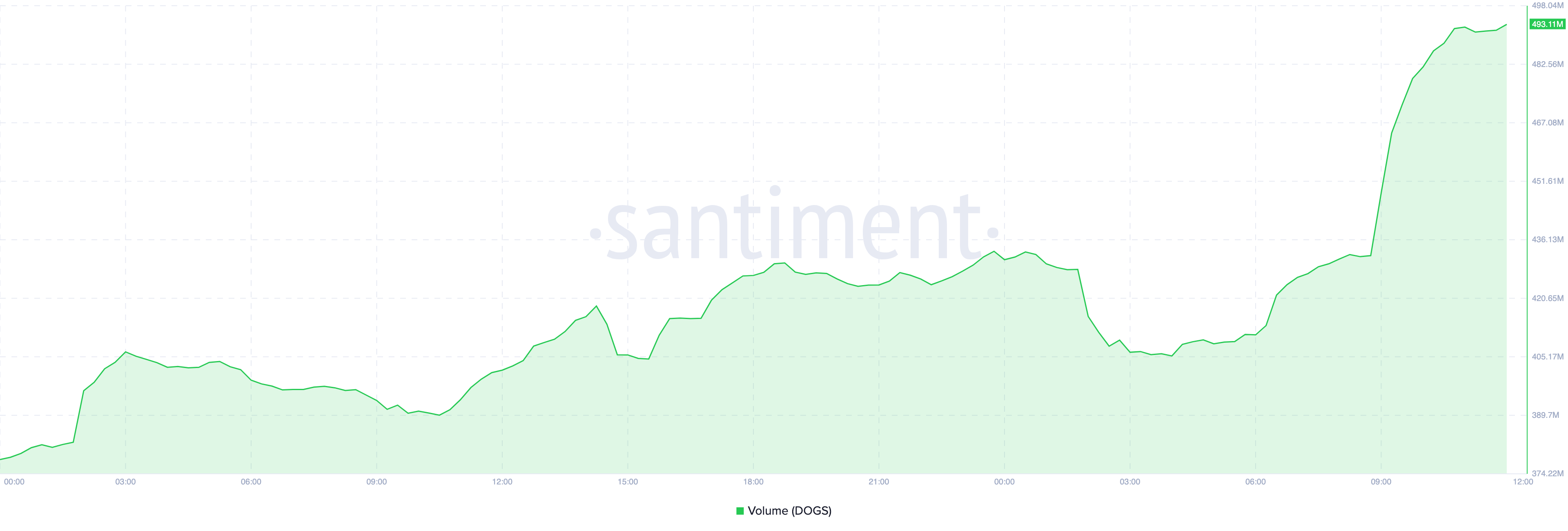 Antes do anúncio da Binance, o volume de negociação da moeda meme DOGS estava abaixo de US$ 400 milhões. Até o momento desta publicação, o volume subiu para quase US$ 500 milhões, sinalizando um interesse crescente.