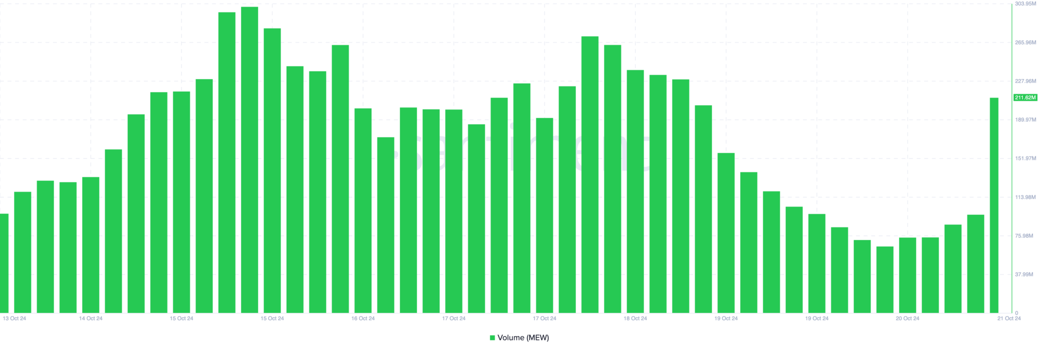 Enquanto isso, assim como o preço, o volume do MEW também aumentou. De acordo com a Santiment, o volume do token da Solana ultrapassou US$ 200 milhões, sinalizando forte apoio de vários participantes do mercado durante o rápido rali.