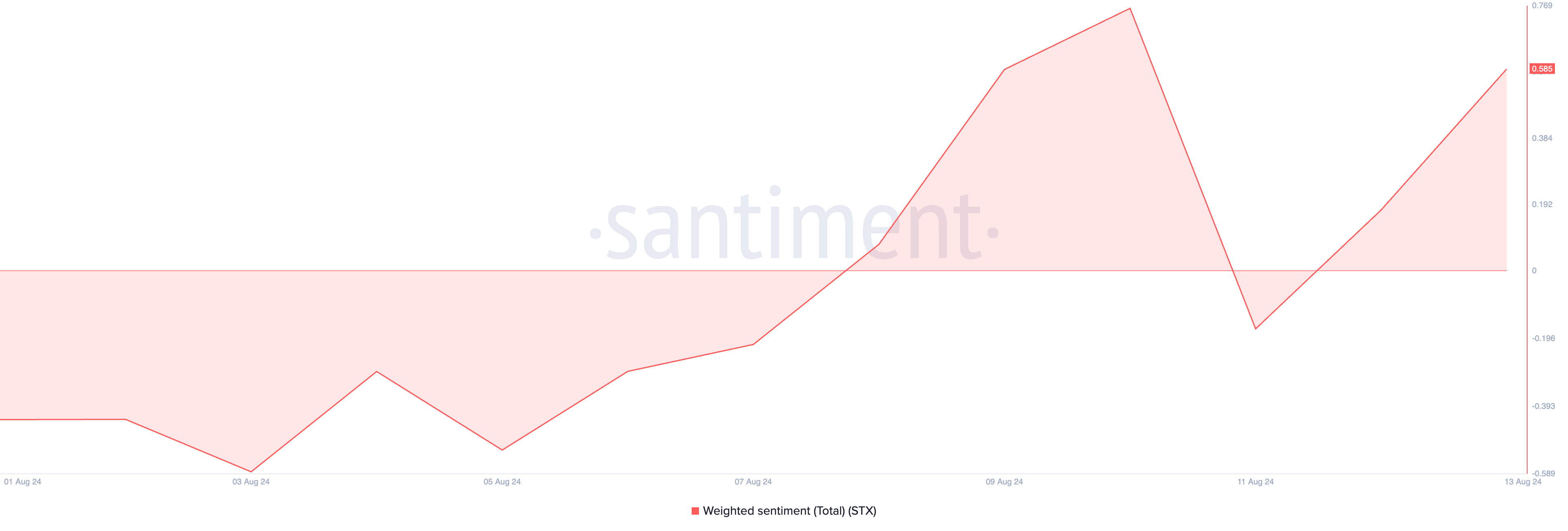 Até o momento, o sentimento ponderado da STX é de 0,585.