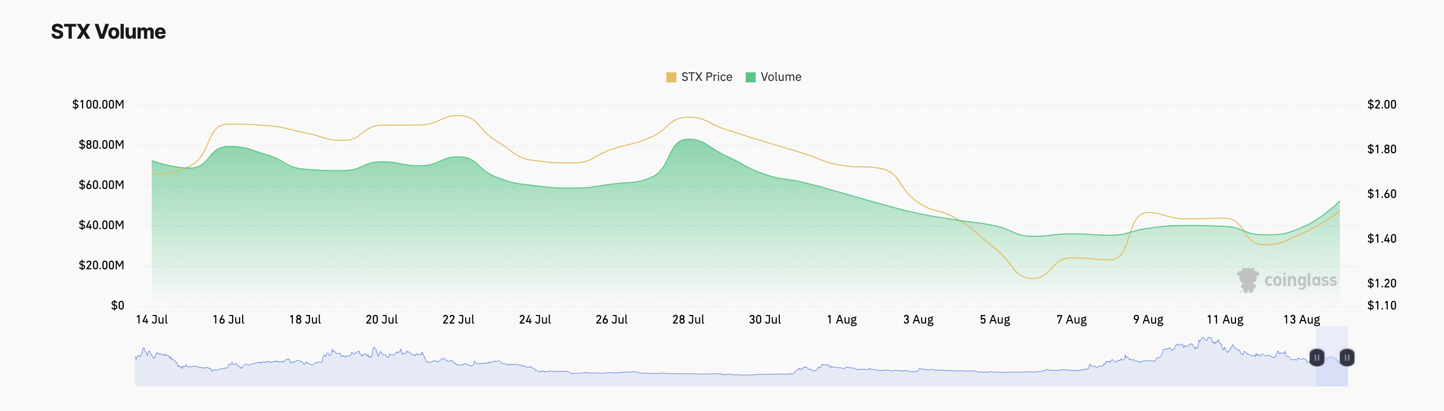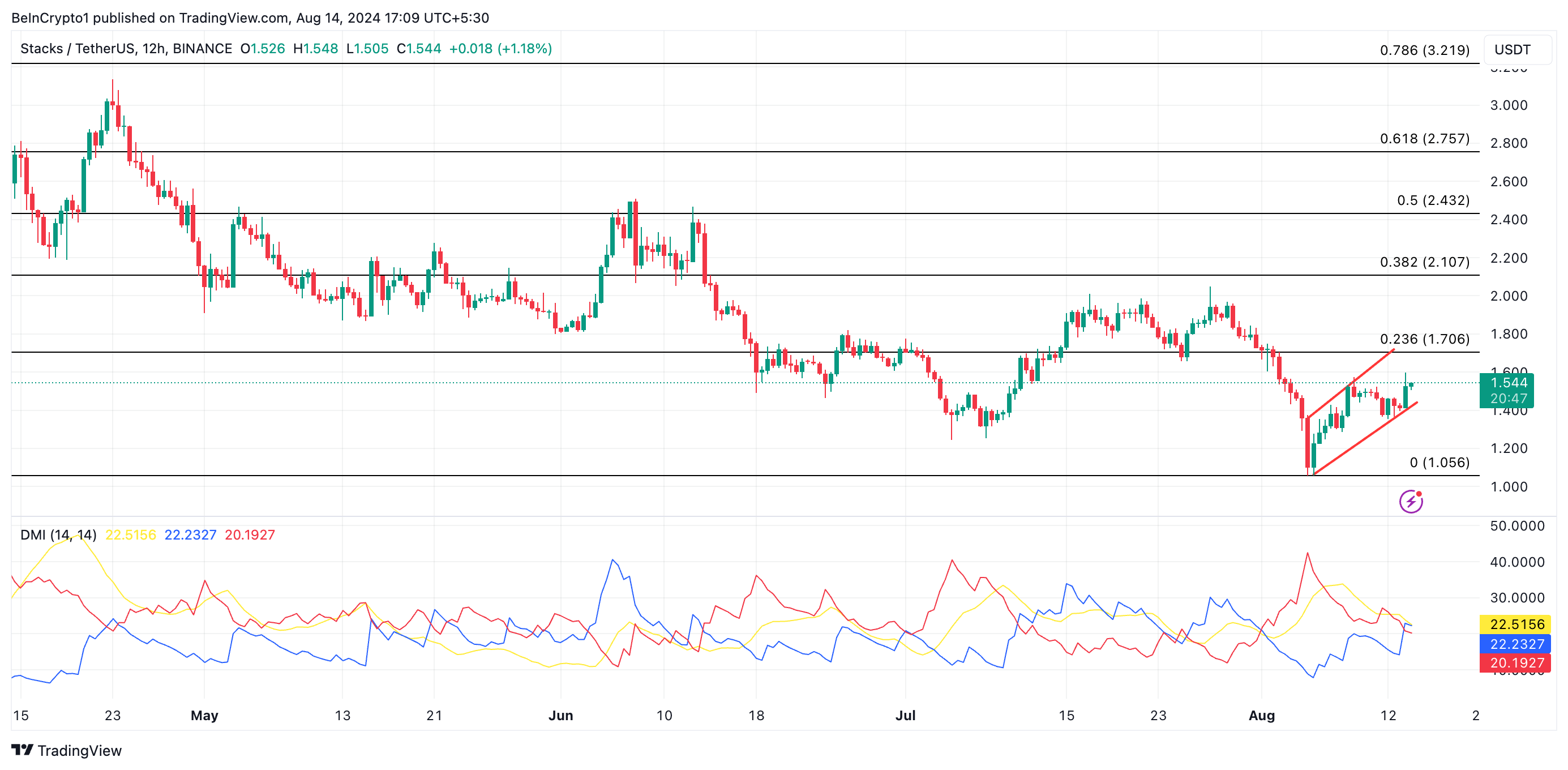 O preço da Stacks (STX) subiu 40% desde que atingiu a mínima de oito meses de US$ 1,10 em 5 de agosto, em meio a uma queda mais ampla do mercado.