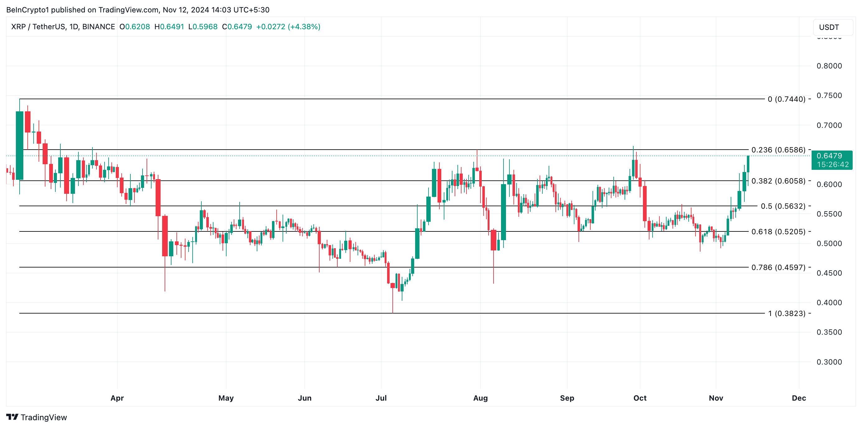 A avaliação do BeInCrypto sobre a configuração do XRP indica que agora ele visa retornar a sua máxima do ano de US$ 0,74. Quando isso deve acontecer?