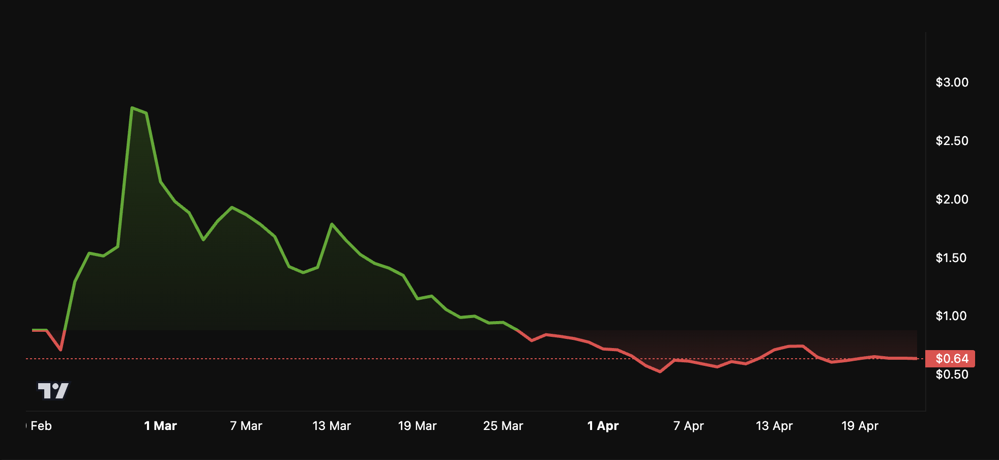 Após o lançamento de sua mainnet e um recorde no final de fevereiro, o preço da Pi Coin sofreu uma queda considerável, ficando abaixo da marca de US$ 1. Além disso, no último mês, a altcoin teve uma queda de 30,5%.
