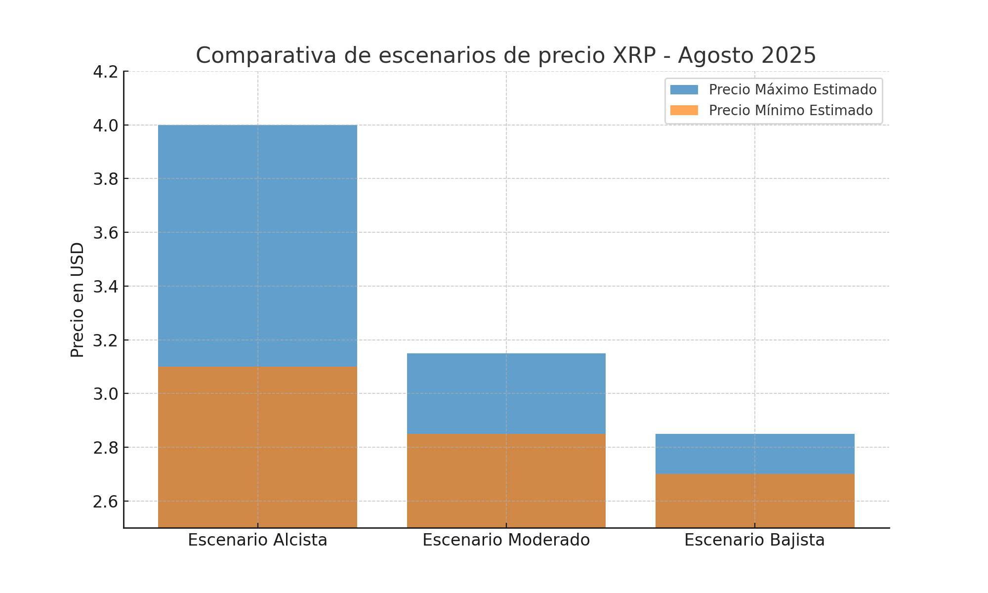 Após analisar seu desempenho recente e as condições de mercado, o ChatGPT projeta três cenários principais para o XRP em agosto de 2025.