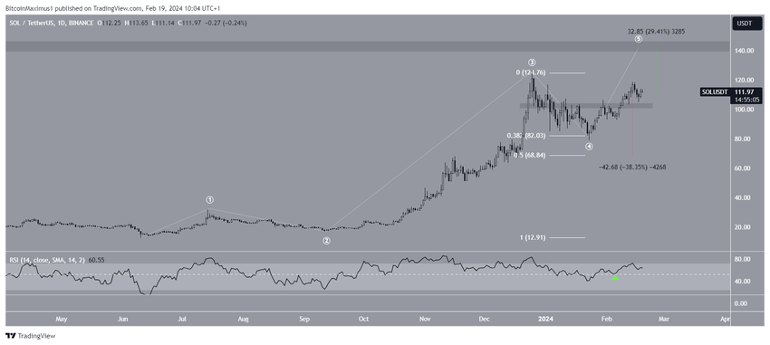 Se a contagem estiver correta, a SOL atingirá uma alta próxima à próxima resistência de longo prazo em US$ 145, 30% acima do preço atual.