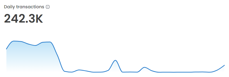 No entanto, a métrica está em forte ascensão desde que atingiu essa mínima, atingindo 242 mil transações na segunda-feira (8) – o que representa um aumento de quase 6.000%.