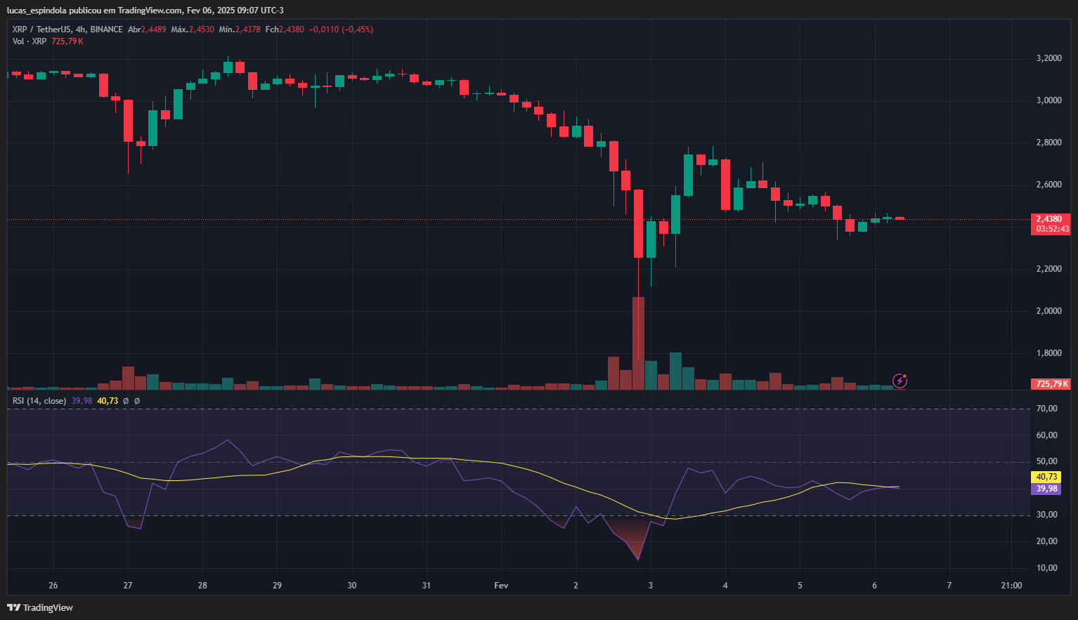 O XRP apresenta sinais mistos, com estabilidade após uma forte queda e um RSI ainda abaixo da zona neutra. Para que o ativo inicie uma recuperação significativa, será necessário um aumento no volume comprador e o rompimento de resistências-chave. O mercado deve ser monitorado de perto nos próximos dias para identificar uma possível reversão ou continuidade da tendência lateral.