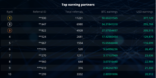 Os três principais parceiros de referência já ganharam mais de 111 Bitcoin em ganhos cumulativos, o que é uma estatística impressionante, considerando que a PrimeXBT ainda é uma plataforma relativamente nova.