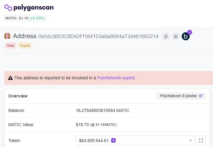 A equipe da Poly Network fez um apelo a exchanges para que elas bloqueassem os fundos roubados: