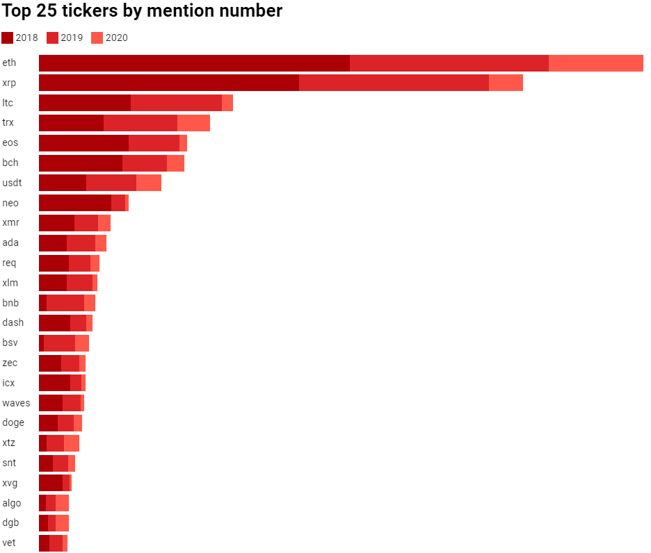 Os pesquisadores excluíram o bitcoin do estudo por vários motivos. Dessa forma, se concentraram nas 25 criptomoedas mais mencionadas depois do bitcoin.