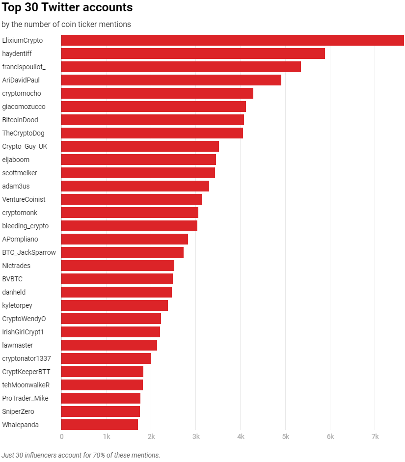 Como resultado, a pesquisa indicou que os influenciadores seguem as notícias, e não as criam. Se eles tweetam com mais frequência sobre uma determinada moeda, é porque o preço mudou, e não o contrário.
