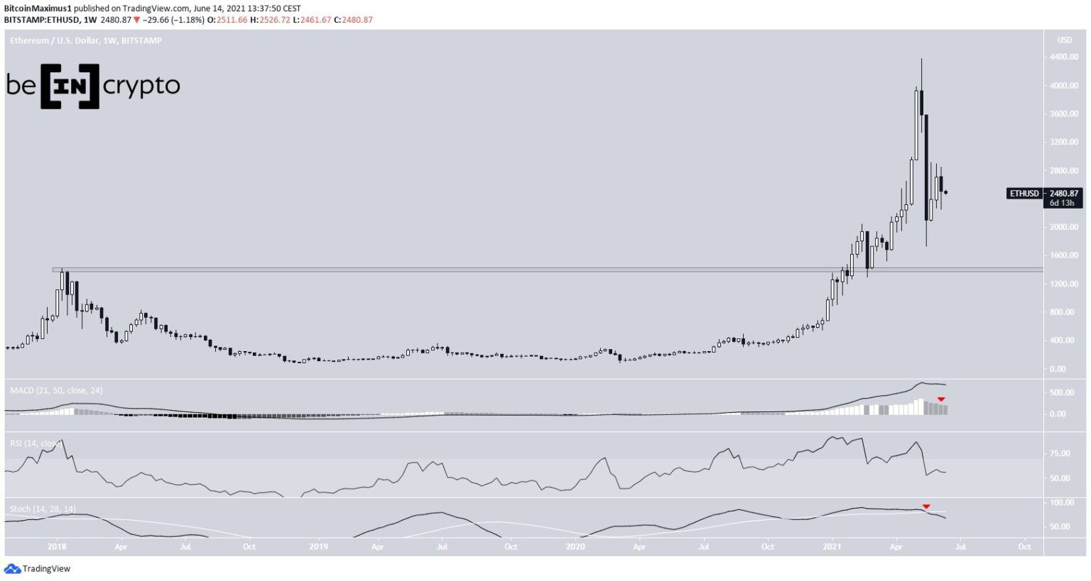 A ETH está em baixa desde que atingiu seu preço recorde em 12 de maio. A queda foi acentuada, culminando com uma mínima de US$ 1730 no dia 23 de maio. Isso representou uma redução de 60,50% no preço em apenas 11 dias.