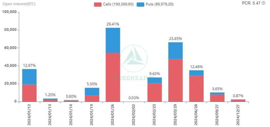 De acordo com Deribit, ainda há grandes contratos em aberto ao preço de exercício de US$ 50.000, com US$ 1,2 bilhão em opções de compra. Com uma concentração tão grande de opções de compra a esse preço, os traders de derivativos estão prevendo que os preços do BTC subirão até o final de janeiro.