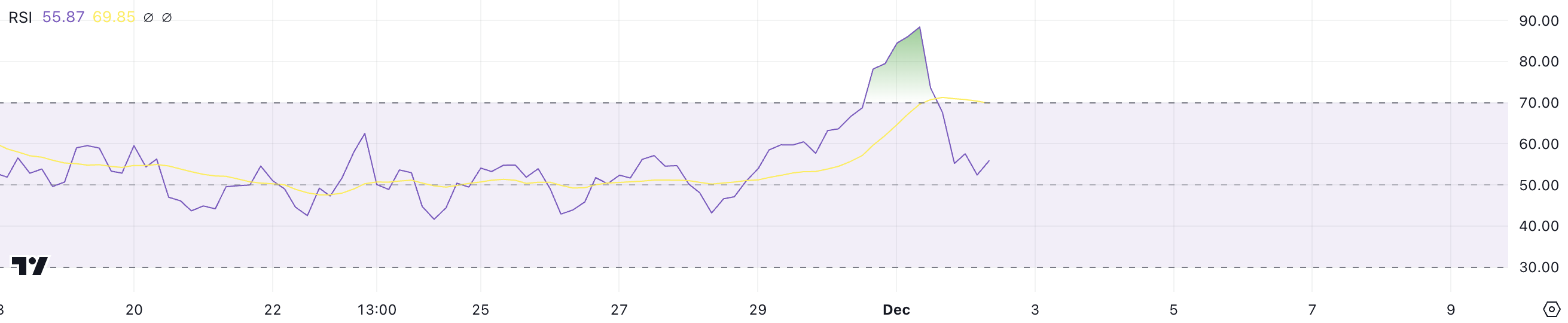 O índice normalmente varia de 0 a 100, com limiares chave em 30 e 70. Um indicador abaixo de 30 sugere que um ativo pode estar sobrevendido e prestes a ter uma recuperação de preço, acima de 70 indica potencial sobrevalorização.