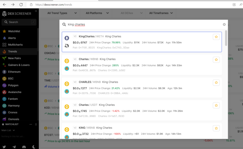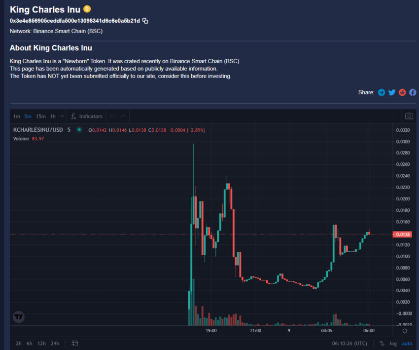 O rei Charles Inu (CHARLES) já começou bem e espera-se que continue subindo, considerando a publicidade que virá de sua iminente coroação.