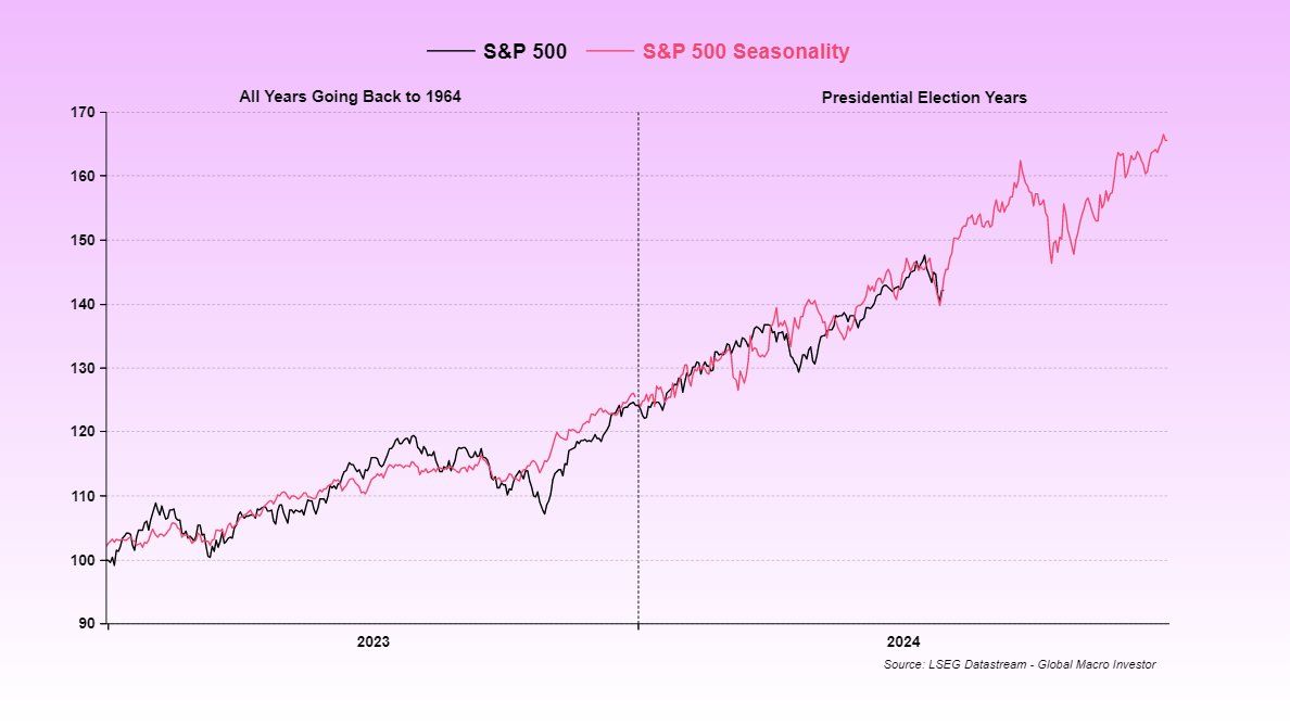 A eleição nos EUA é outro catalisador que pode levar o Bitcoin a um novo ATH.“É o momento perfeito durante os anos eleitorais”, diz Pal, referindo-se ao desempenho dos preços com base no histórico.