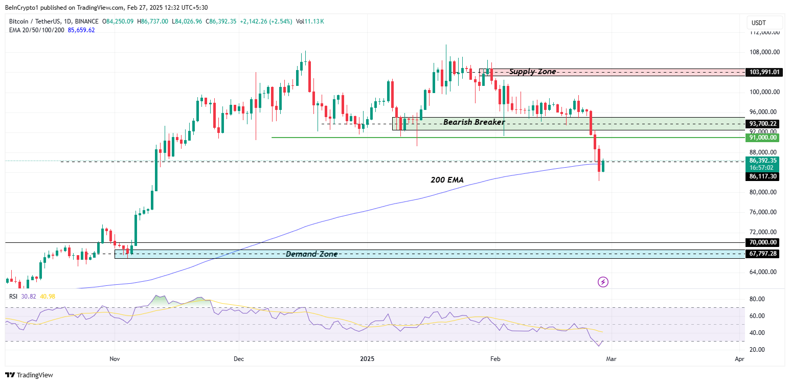 O Bitcoin, que havia ultrapassado US$ 100 mil com otimismo por uma segunda administração Trump, agora caiu para menos de US$ 85.310. A análise de mercado aponta para a falta de suporte sólido entre a faixa de US$ 90 mil e US$ 70 mil, levantando preocupações sobre novas quedas.