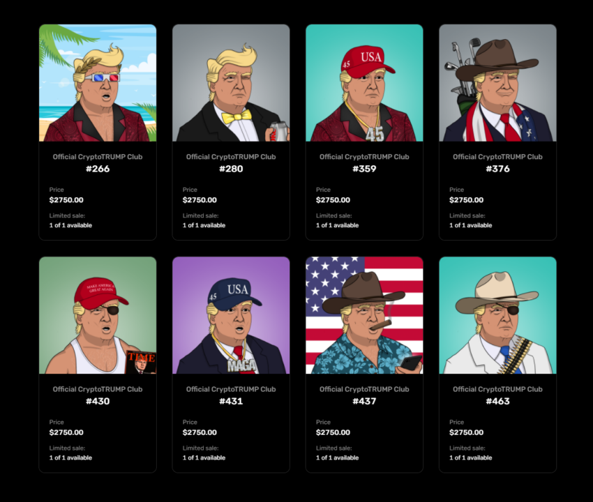 A primeira coleção de vitrines da DeepRedSky é o Official CryptoTRUMP Club. Ele contará com o 45º Presidente dos Estados Unidos. Cada CryptoTRUMP é único, e mostrará o ex-presidente Donald Trump em vários cenários.