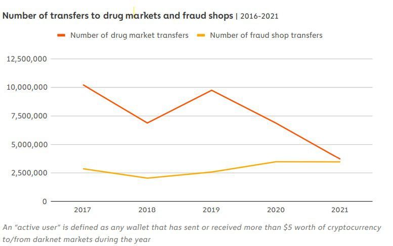 Notavelmente, o relatório também descobriu que o número de usuários ativos nos mercados de drogas caiu de cerca de 1,7 milhão em 2016 para 1,2 milhão em 2021.