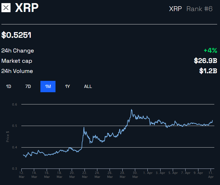 No fechamento da matéria, o XRP era negociado a US$ 0,525, com alta de 4% nas últimas 24 horas.