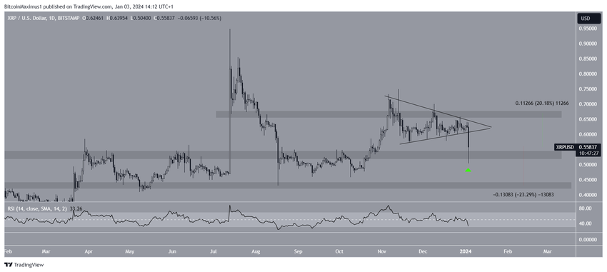 Uma quebra abaixo de US$ 0,54 pode causar uma queda de 25% no preço do XRP para o próximo suporte mais próximo, em US$ 0,42. Por outro lado, uma recuperação bem-sucedida pode levar a um aumento de 20% e a um novo teste da resistência de US$ 0,67.