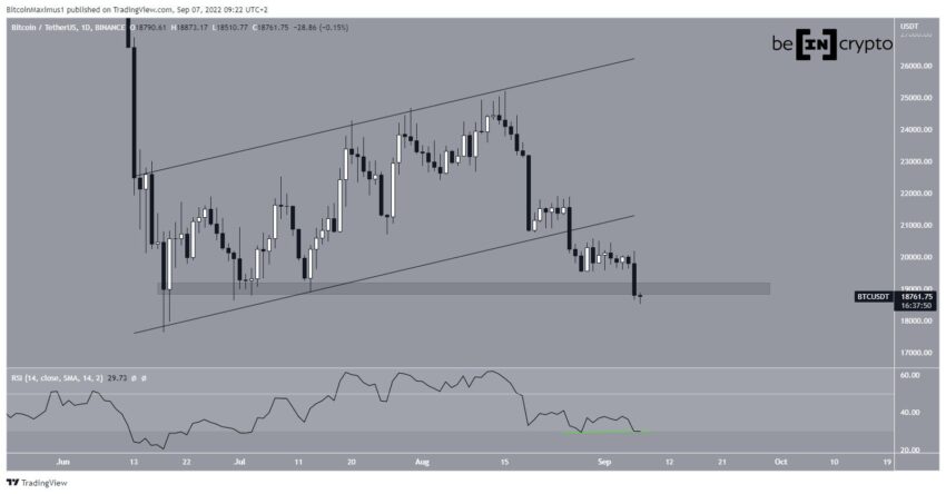 O Bitcoin (BTC) quebrou seu padrão corretivo e corre o risco de quebrar de uma área de suporte horizontal. Se isso ocorresse, provavelmente levaria o preço abaixo de suas mínimas de junho.