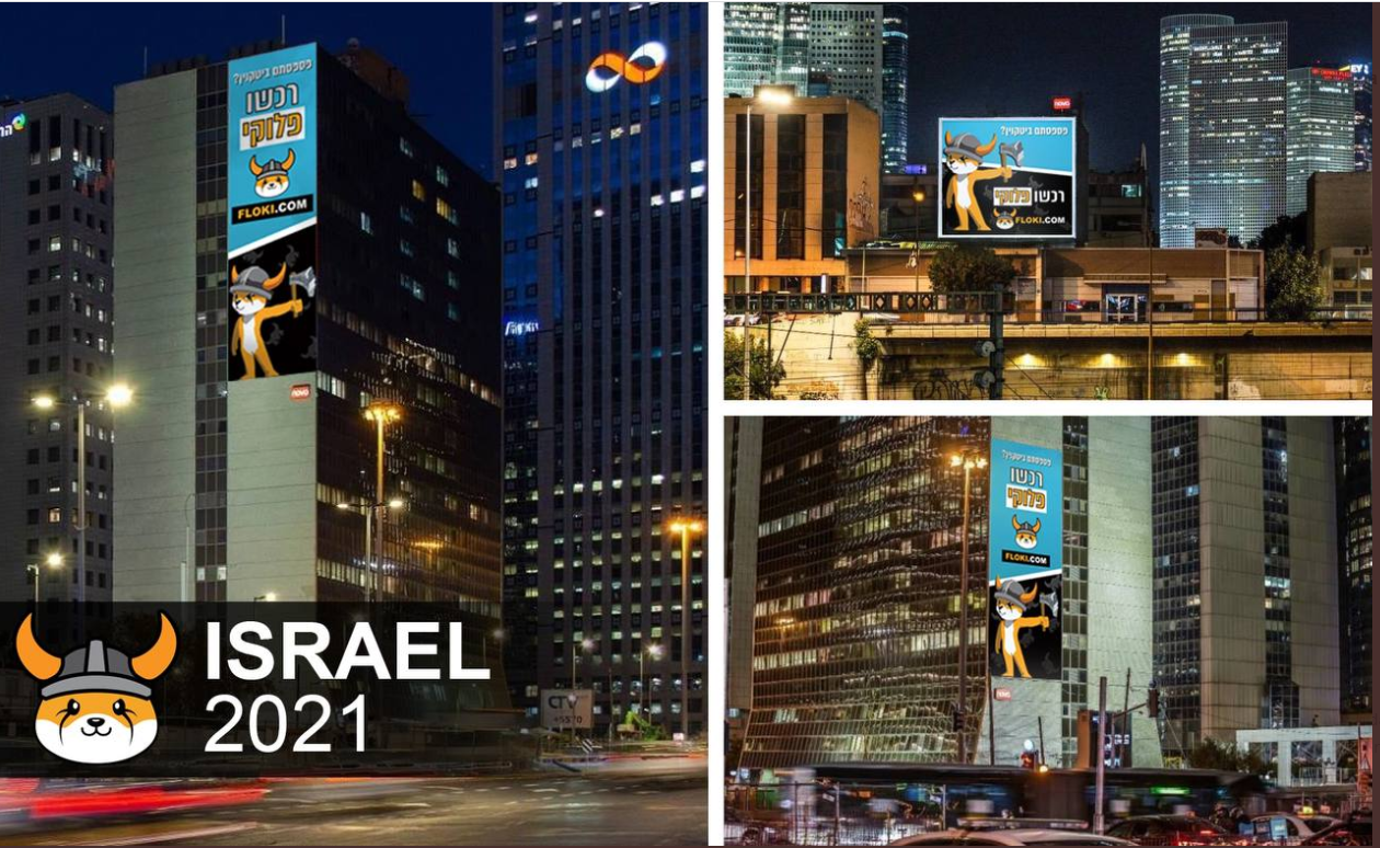 A Floki Inu fez o anúncio em sua conta no Twiter onde detalha as ações que fará nos próximos 30 dias. Mais de 20 cidades – consideradas as mais importantes da nação israelense – pela moeda meme receberão 180 outdoors e placas. Oito “paredes-murais” selecionadas em alguns locais terão anúncios premium.