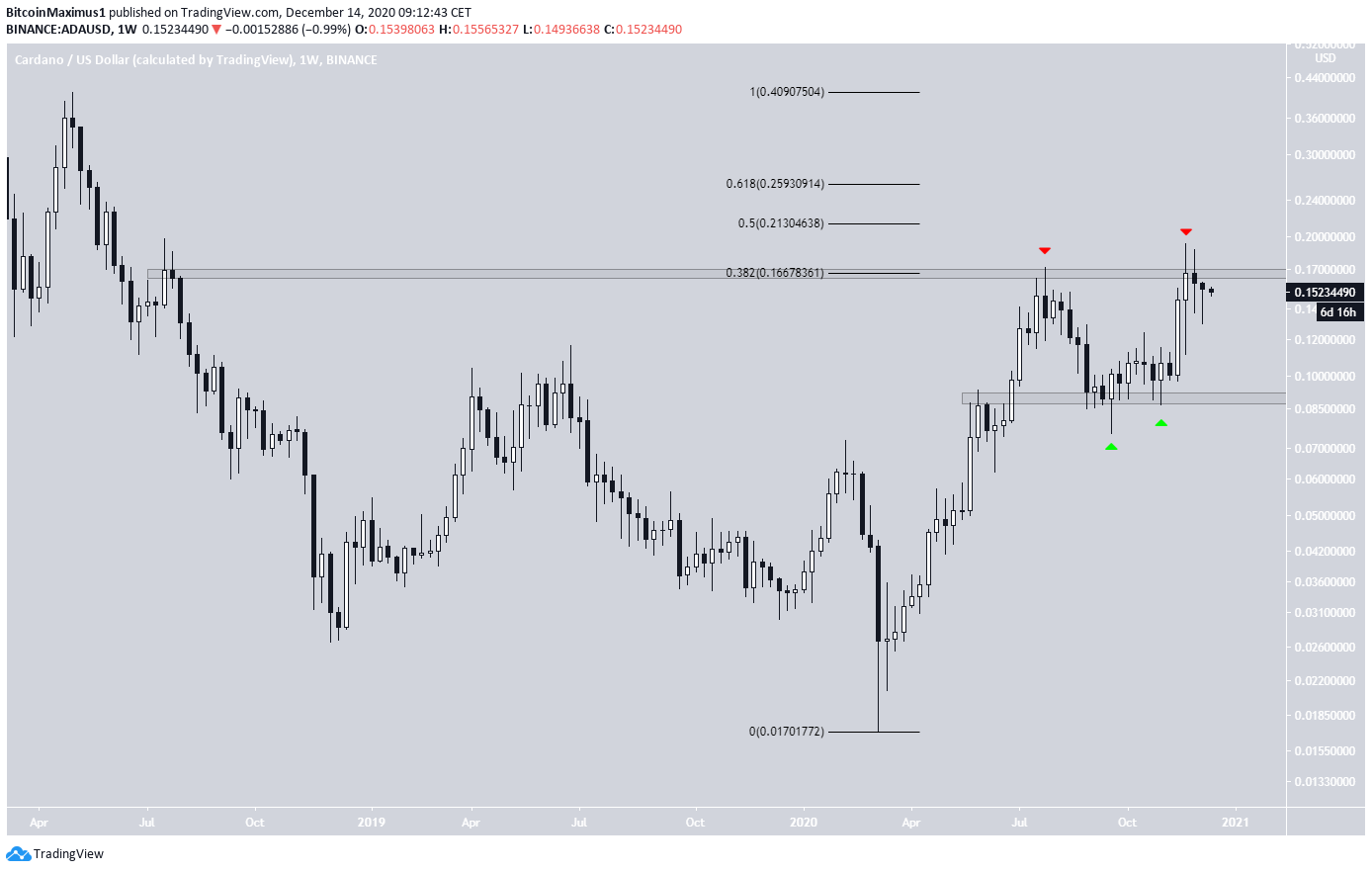 O preço da Cardano (ADA) foi rejeitado por um nível de resistência de longo prazo em $ 0,17. Não atingiu um fechamento de longo prazo acima desta resistência desde junho de 2018.