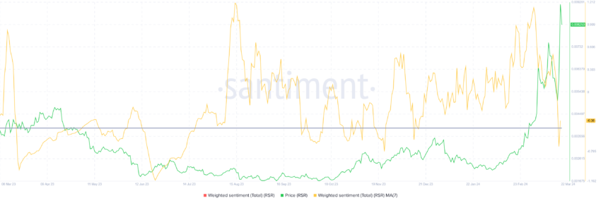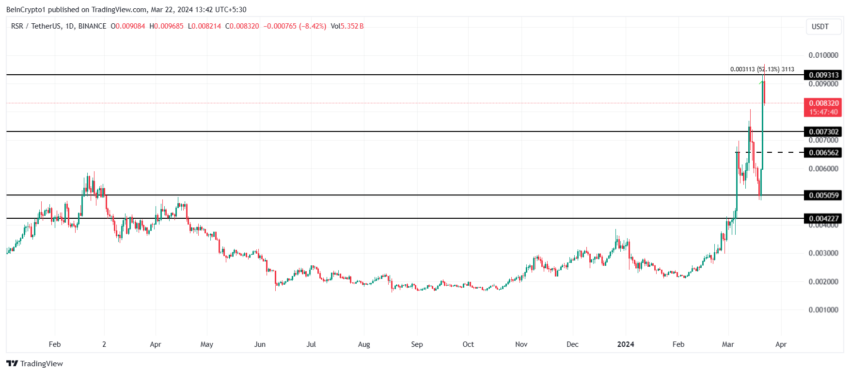 É interessante notar que, apesar do crescimento, o potencial de qualquer impacto da alta é quase insignificante, já que a maior parte dos ganhos será eliminada pelas devidas correções. A razão por trás disso é que o RSR está supervalorizado, o que significa que a alta em torno do token saturou.