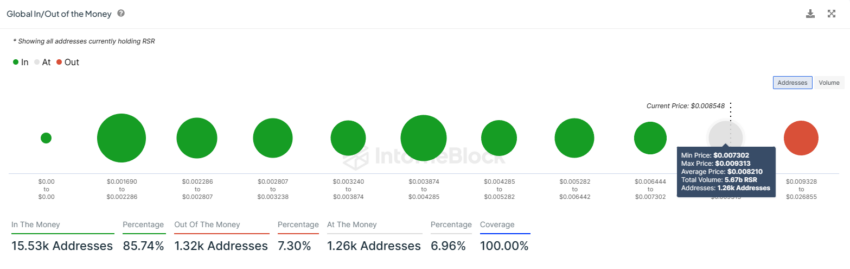 Os investidores compraram 5,67 bilhões de RSR, valendo mais de US$ 47 milhões, nesse ponto de preço, marcando assim o limite inferior da faixa. Uma queda nesse ponto levará esses 1.260 investidores de volta às perdas, fazendo com que o preço caia para US$ 0,006500.