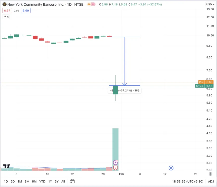 O declínio acentuado do valor das ações do NYCB, desencadeado por um corte de dividendos e por uma perda surpresa, realça a posição precária dos bancos que oscilam perto do limite regulamentar de US$ 100 bilhões.