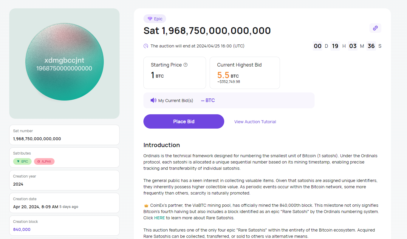 A exchange de criptomoedas Coinex é a responsável pelo leilão. Ele gerou grande expectativa no mercado de criptomoedas, devido a sua raridade e significado histórico.