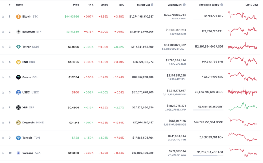 As 10 maiores criptomoedas desta semana