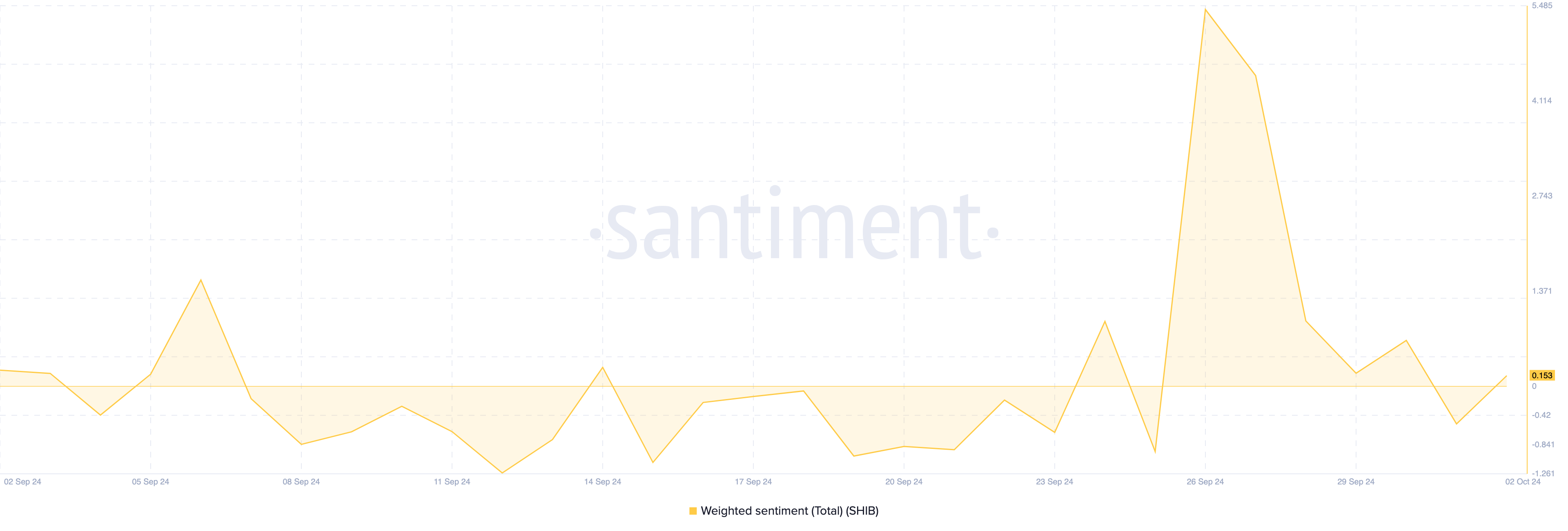 No dia 1º de outubro, o Sentimento Ponderado do SHIB caiu para a região negativa. Mas essa avaliação retornou ao território positivo, sugerindo que um aumento de preço pode estar a caminho para o token.