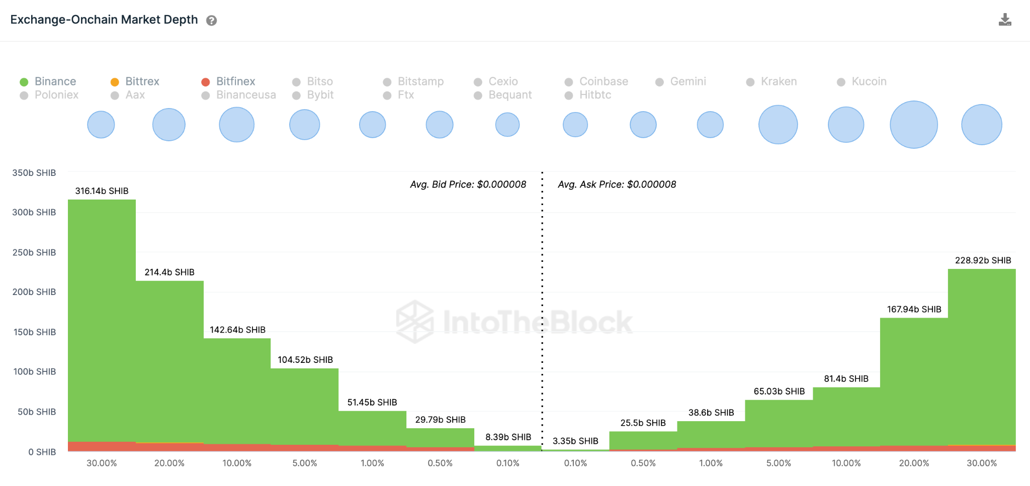 Em mais uma confirmação das perspectivas otimistas, os livros de pedidos nas exchanges sugerem que os investidores estão procurando comprar a SHIB em torno da marca de US$ 0,0000075.